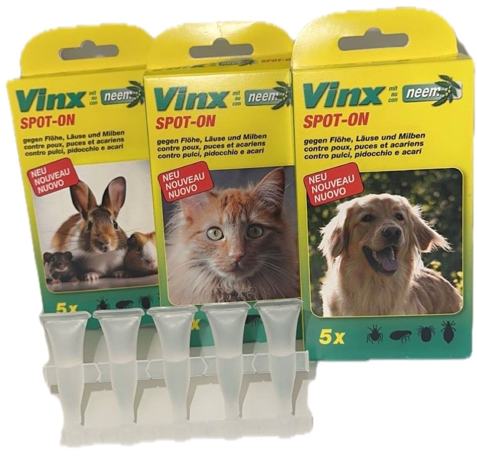 Grazie ai prodotti Vinx, il nostro marchio della casa, combatterete in modo efficace tutti i parassiti e gli insetti che attaccano i vostri animali domestici e da compagnia.